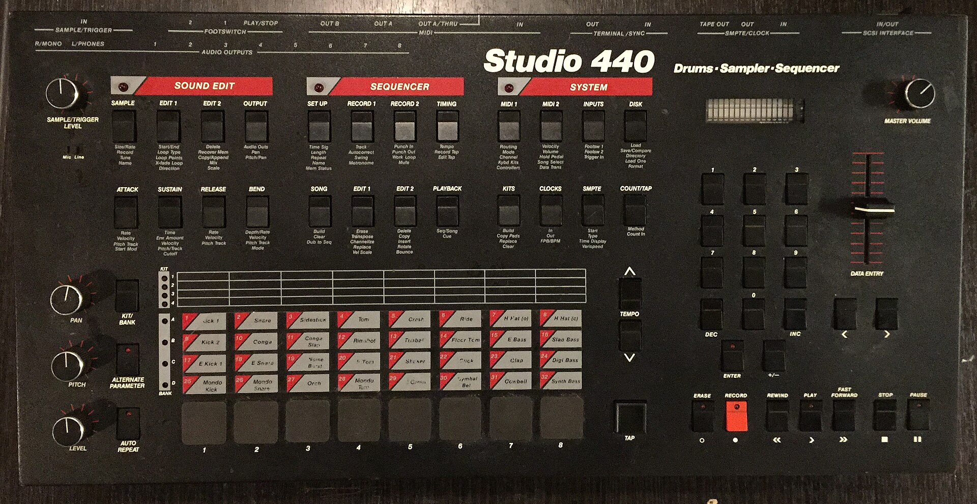 Studio 440은 시퀀싱, 샘플링 드럼 및 음악 제작 머신의 원조 격인 모델입니다. Akai MPC60, MPC2000, MPC3000, E-mu SP1200 같은 기기를 들어본 적이 있다면 Studio 440도 반드시 살펴볼 가치가 있습니다. 이들 중 일부는 Studio 440의 한계를 넘어섰지만, 여전히 매력적인 기기입니다. Studio 440과 최신 Akai MPC 기기 사이의 가장 큰 차이점은 샘플러의 비트 심도입니다. Studio 440은 12비트 샘플러를 사용하여, 16비트 MPC와 비교하면 약간의 로우파이(lo-fi) 사운드를 제공합니다. 또한, Studio 440은 520KB라는 적은 메모리를 가지고 있어 짧은 퍼커션과 드럼 정도만 샘플링할 수 있습니다.