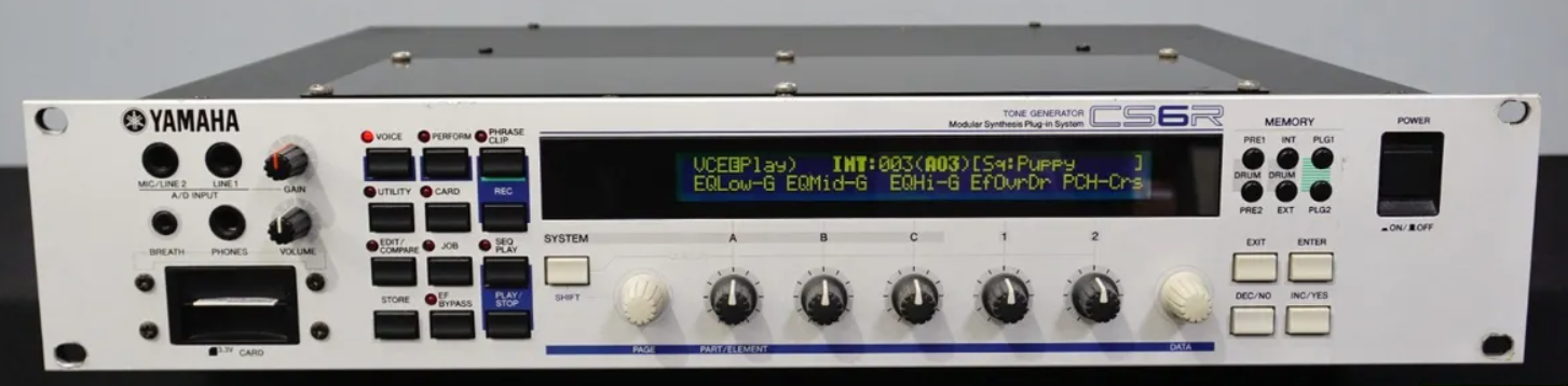 CS6x는 폴리포니, 사운드, 이펙트 등을 추가하는 두 개의 플러그인 확장 보드 슬롯으로 확장 가능합니다! 공연 및 컨트롤을 위해 CS6x에는 피치 및 모드 휠, 리본 컨트롤러 및 6개의 할당 가능한 노브가 있습니다. CS6x에는 내장 3.3V 스마트 미디어 저장 장치도 있어 4, 8, 16 또는 32MB 카드에 신디사운드 데이터를 저장할 수 있습니다. Yamaha의 최대이자 최고의 CS 신디사이저입니다. Faithless와 Depeche Mode에 의해 사용되었습니다.