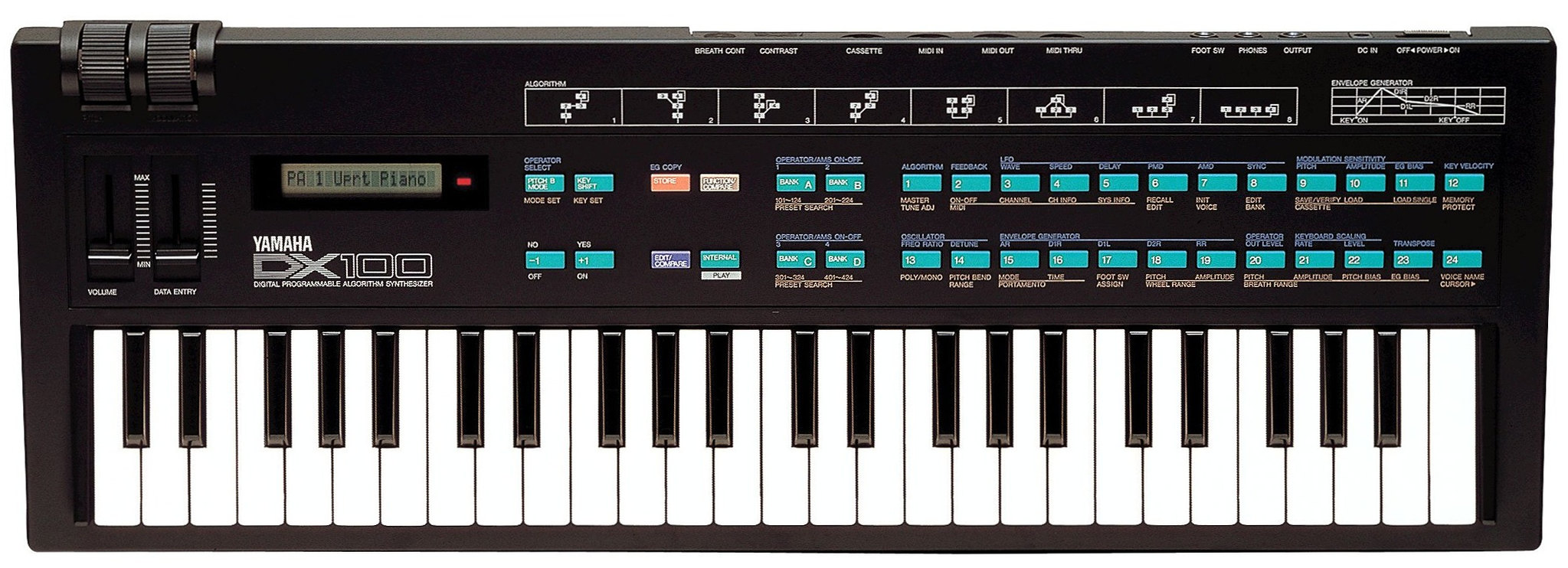 이러한 것들은 DX7이 매우 우수하고 능력 있는 신디사이저라는 사실을 숨깁니다. 이것은 8 개의 보이스를 포함했으며, 각각에는 여섯 개의 “오퍼레이터” 또는 서로를 다양한 방법으로 변조할 수있는 개별 사인파 오실레이터가 있었습니다. (Yamaha는 나중에 4 개의 오퍼레이터 버전을 작은 칩 세트로 줄여 이를 사용하여 여러 저렴한 FM 신디사이저의 기반이 되었습니다. 또한 비디오 게임 및 컴퓨터 사운드 카드1)에 사용되었습니다.) 키보드는 벨로시티 및 애프터 터치 감도가 있었으며, DX7은 공장에서 MIDI가 장착 된 첫 번째 신디사이저 중 하나였습니다. 병적인 프로그래머에게는 다양하고 독특한 사운드를 만들 수 있는 도구였습니다. Brian eno는 이를 광범위하게 프로그래밍했습니다. 물론 그의 사운드는 그 시절 시장을 지배한 아날로그 신디사이저와는 확연히 다르게 들렸습니다.