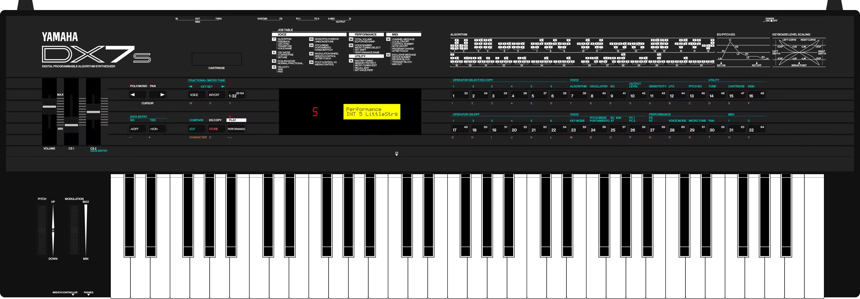 그래서 Yamaha는 FM 신디사이저 회로로 작은 DX7 신디사이저를 구축했습니다. DX7의 중요한 특징 중 하나는 그것의 훌륭한 팩토리 패치(프리셋)였습니다. 이 팩토리 패치는 화려한 피아노와 로즈 피아노, 그리고 브라스 사운드를 제공하는 것으로 사람들을 감동시켰습니다. 1983년에 소개된 이후 2년 만에 DX7은 대부분의 경쟁사를 쓸어 버렸습니다. 추가 모델은 더 많은 패치 메모리, 개선된 처리 회로, 추가 사운드 및 패치 데이터를 위한 플로피 디스크 저장 기능을 추가했습니다. “If I Say Yes”(1986)와 “Wind Beneath My Wings”(1989)에서 Yamaha DX7 사운드 소스 “ROM 128”패치 “Sloe Bells” 및 ROM-4A 패치 “Tub Bells”이 들려졌습니다. 노래 “Dreamin'”(1988) 및 “Wind Beneath My Wings”(1989) 및 Kids Incorporated “Dreamin'” 및 “Wind Beneath My Wings”커버 노래에서 Yamaha DX7 내장 패치 “Electric Piano 1”및 ROM-1A 패치 “Electric Piano 1”및 “Tub Bells”을 들을 수 있었습니다.