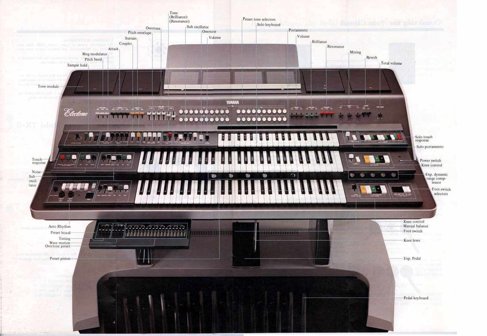 GX-1은 Yamaha의 첫 번째 대형 폴리포닉 아날로그 신디사이저로, 정말 대단한 기계였습니다! CS-80(또 다른 거대한 폴리포닉 신디사이저)의 전신으로 여겨지는 GX-1은 삼단식 키보드, 페달보드, 리본 컨트롤러, 8개의 폴리포닉 음성, 크롬 처리된 받침대와 50,000달러 이상의 가격표를 자랑했습니다! 일반적인 뮤지션을 위해 설계된 것은 아니었으며, 제작된 대수는 10개 이하로, 주로 전설적인 신디사이저/키보드 연주자들이 소유하고 있었고, 그 중에는 Keith Emerson, Led Zeppelin의 John Paul Jones, Stevie Wonder, Rick Wright, George Fleury, Aphex Twin의 Richard James, ABBA, 그리고 Keith Emerson의 GX-1을 구매한 Hans Zimmer 등이 포함됩니다.