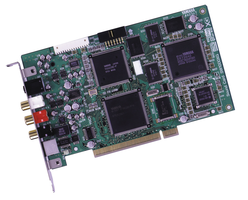 Yamaha SW1000XG는 신디사이저, 믹서, 이펙트 유닛의 기능을 하나의 PCI 사운드 카드에 통합한 다재다능한 제품입니다. 64보이스 XG 신디사이저, 12개의 모노 오디오 트랙 재생을 위한 6개의 스테레오 웨이브 오디오 버스, 5개의 24비트 이펙트/다이내믹스 버스를 제공하며, MIDI 및 WAV 사운드 모두에 사용할 수 있습니다.