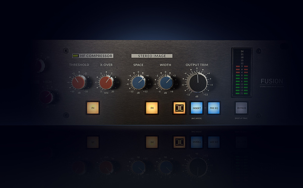 Solid State Logic (SSL) Fusion은 디지털 레코딩에 아날로그 컬러를 더하는 것을 목표로 하는 고급 스테레오 프로세서입니다. 엔지니어들이 고급 아날로그 장비의 바람직한 특성을 신중하게 분석한 결과를 바탕으로 2년간의 개발을 거쳐 탄생했습니다. 이 제품은 SSL의 풍부한 경험을 바탕으로 제작되었지만, 기존 회로를 재활용하지 않고 대부분 새로운 툴로 구성된 8개의 프로세싱 단계를 제공합니다.