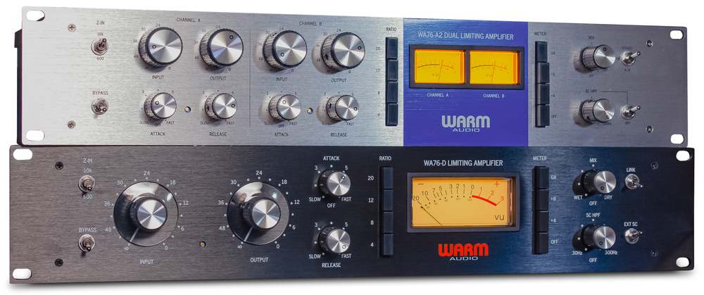 Warm Audio WA76 시리즈는 UREI 1176 Rev A(그리티)와 Rev D(엘리건트)를 재현한 FET 컴프레서 라인업입니다. Mix/SC HPF/SC Insert 등 현대 기능 탑재로 WA76 원조를 완벽 업그레이드한 모노/듀얼 2U입니다.