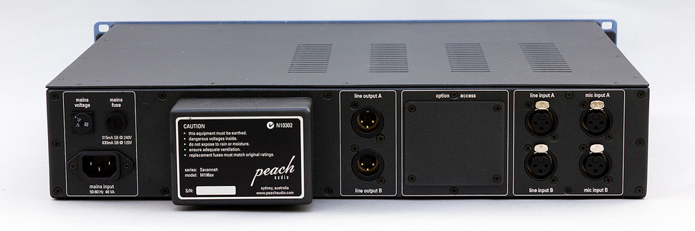 Peach Audio M196sx는 Savannah 시리즈 듀얼 튜브 프리입니다. 7025+6189 + Harbuch 트랜스로 68dB 게인 + M-S 매트릭스를 £2999에 구현한 13kg 2U 랙입니다.