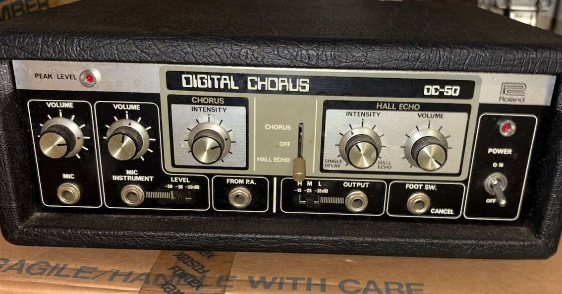 Roland DC-50 Digital Chorus는 1977~78년에 출시된 Roland의 첫 전용 코러스/에코 유닛으로, 이름과 달리 코러스 회로는 100% 아날로그 BBD(Bucket Brigade Device) 방식을 사용합니다. 이 장비는 따뜻하고 풍성한 빈티지 코러스 사운드와, 원시적인 디지털 에코(딜레이) 기능을 결합한 것이 특징입니다.