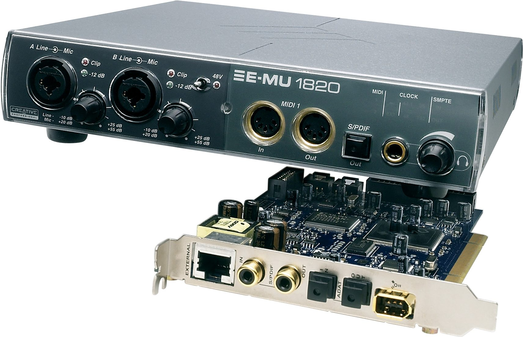 - Emu 1820M과 유사한 Audiodock 외부 브레이크아웃 박스 포함.
