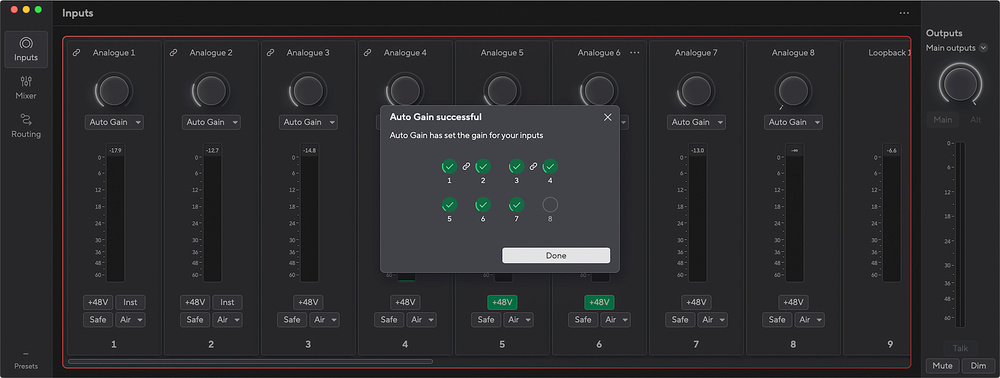 - Focusrite Control 2 앱: iOS 및 Android 장치에서 원격 제어 가능