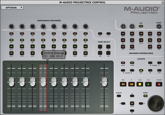 Project Mix I/O는 Digi 002, Command 8을 위해 Digidesign이 개발한 시스템이 아닌 Mackie HUI 프로토콜을 사용하여 *Pro Tools*와 통신합니다. 또한 Mackie Control, Logic Control 프로토콜도 지원하므로, 범용 컨트롤러 및 오디오 인터페이스로 사용 가능합니다. Mackie Control과 유사한 제품들은 사이드카 유닛을 추가하여 페이더 뱅크를 확장할 수 있지만, M-Audio는 Project Mix에 대한 확장 계획이 없습니다.