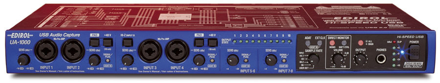Edirol UA1000은 Hi-Speed USB 2.0 프로토콜을 사용하는 세계 최초의 오디오 인터페이스입니다. 최대 10개의 동시 입출력을 지원하며, 다양한 마이크, 기타 및 라인 입력, 디지털 S/PDIF 광/동축, 8채널 ADAT, 워드 클럭 및 MIDI I/O를 제공합니다.