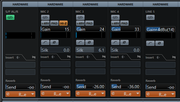 제어권한이 Cubase로 넘어간 입력 채널의 대부분의 컨트롤을 Cubase를 통해서 할 수 있게 되므로, DSP 믹서창을 열었다 닫았다 하는 번거로움이 없어진다.