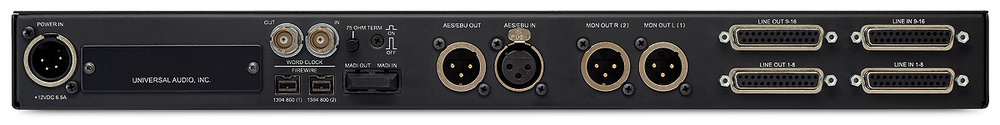 * 폼 팩터: 1U 랙 케이스 * 냉각 팬: 냉각 팬이 없어 조용하게 사용할 수 있습니다. * 아날로그 출력: 남성 XLR의 아날로그 출력 쌍은 전면 패널의 로터리 엔코더를 사용하여 디지털 도메인에서 레벨을 조정하는 모니터 피드를 제공합니다. * 미터링: 전면 패널의 10-세그먼트 LED 미터는 16개 입력 또는 출력 모두에 대한 신호 레벨을 표시하도록 전환할 수 있습니다. * 연결: 2개의 Firewire 800 커넥터가 내장되어 있습니다.