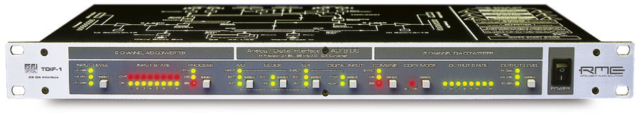 RME ADI-8 DS는 8채널의 양방향 A-D/D-A 컨버터로, 다양한 기능을 제공하며 1U 랙마운트 케이스에 담겨 있습니다. ADI8 Pro의 발전형이며, 가장 큰 차이점은 24비트, 96kHz 작동을 지원한다는 것입니다 ('DS'는 Double Speed를 의미).