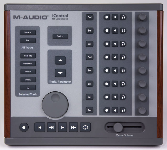 M-Audio iControl은 Apple의 GarageBand 2 애플리케이션을 위해 설계된 전용 컨트롤 서페이스입니다. 저렴한 가격(£129)에 GarageBand의 주요 기능들을 하드웨어 컨트롤로 조작할 수 있도록 설계되었습니다.