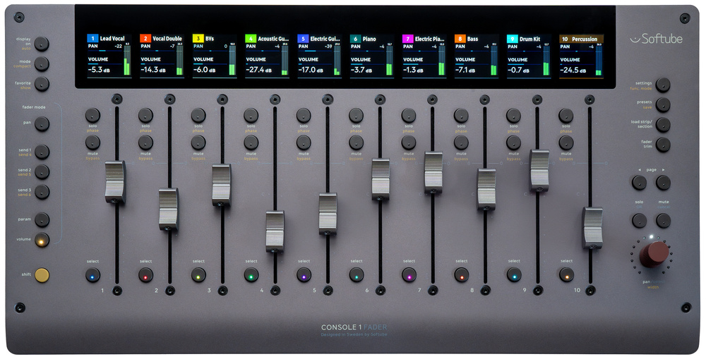 Softube Console 1 Fader MkIII는 Console 1 플러그인 생태계와 UAD, FabFilter와 같은 일부 서드파티 파트너를 위해 설계된 채널 스트립 DAW 컨트롤러입니다. MkI 및 MkII 버전에 익숙한 사용자라면 믹싱 시스템이 Console 1 Channel과 Console 1 Fader 두 개의 장치로 구성되어 있다는 것을 알 것입니다.