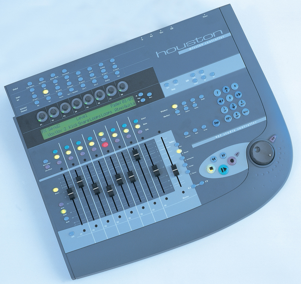Steinberg Houston은 Steinberg의 Cubase VST 및 Nuendo 레코딩 소프트웨어를 보완하도록 특별히 설계된 하드웨어 컨트롤러입니다. 모터 페이더, 대형 LCD 창, 전송 컨트롤, 조그/스크럽 휠 및 숫자 키패드를 제공합니다.