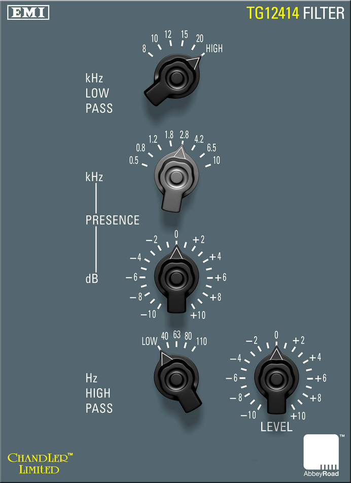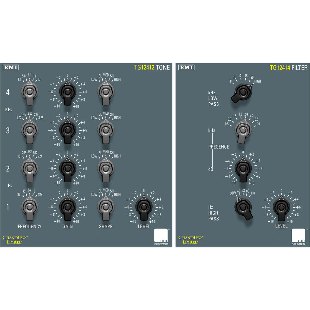 각 유닛에는 하이 패스, 로우 패스, 프레즌스 컨트롤과 MKIV TG 라인 앰프가 포함되어 있습니다. 프레즌스 컨트롤은 TG12412 마스터링 EQ의 중간 설정과 거의 동일한 8개 주파수에 대해 10dB의 부스트 또는 컷을 제공합니다. 또한, 이 EQ 포인트는 비틀즈와 핑크 플로이드의 많은 녹음에 사용된 TG12345 콘솔 EQ와 동일합니다. 하이 패스 및 로우 패스 회로는 옥타브당 18dB이며 각각 4개와 5개의 선택 범위를 제공합니다.