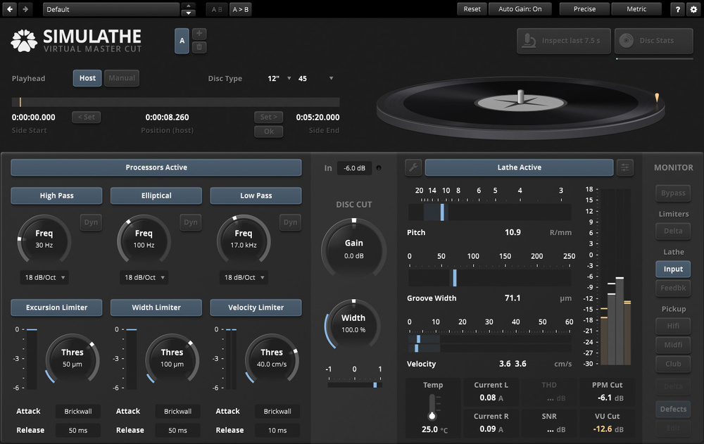 Tokyo Dawn Records SimuLathe는 바이닐(레코드) 마스터링의 실제 과정을 정교하게 시뮬레이션하는 획기적인 플러그인입니다. 바이닐 커팅 엔지니어뿐 아니라, 음악 제작자, 프로듀서, 오디오 애호가, 교육 목적 등 누구나 실제 바이닐 커팅의 물리적·기술적 한계를 가상 환경에서 체험하고 최적화할 수 있도록 설계되었습니다.
