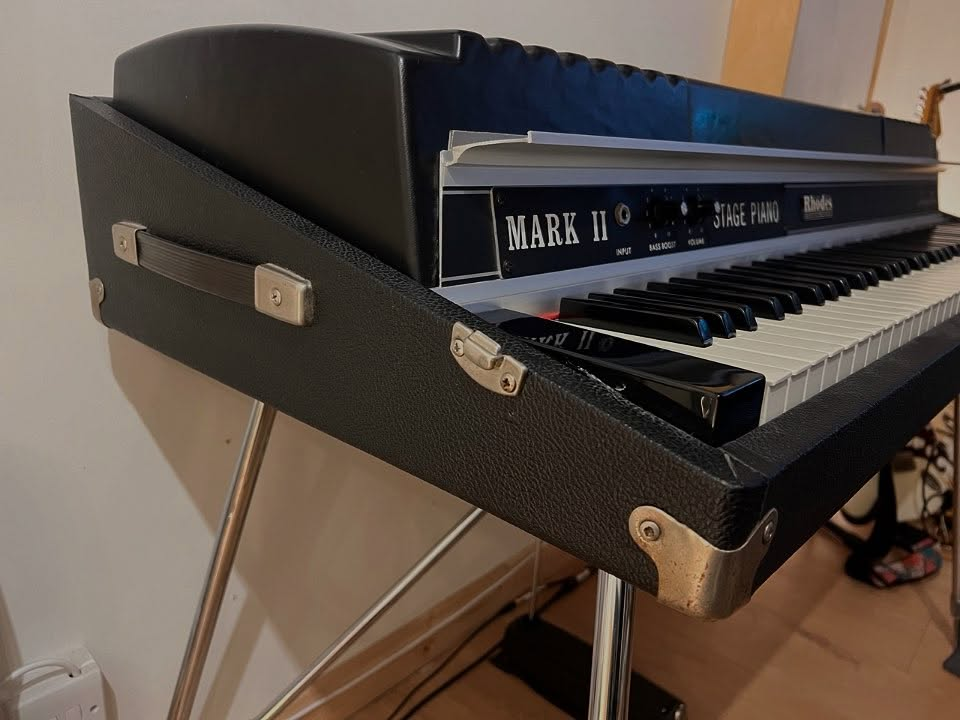 Rhodes Stage 73 MkII는 1979~1983년 생산된 전설적인 일렉트릭 피아노로, 1970년대 후반~80년대 초반을 대표하는 빈티지 키보드입니다. Fender Rhodes Mark I의 후속이자, CBS 시절 마지막 세대의 디자인과 구조를 계승한 모델입니다.