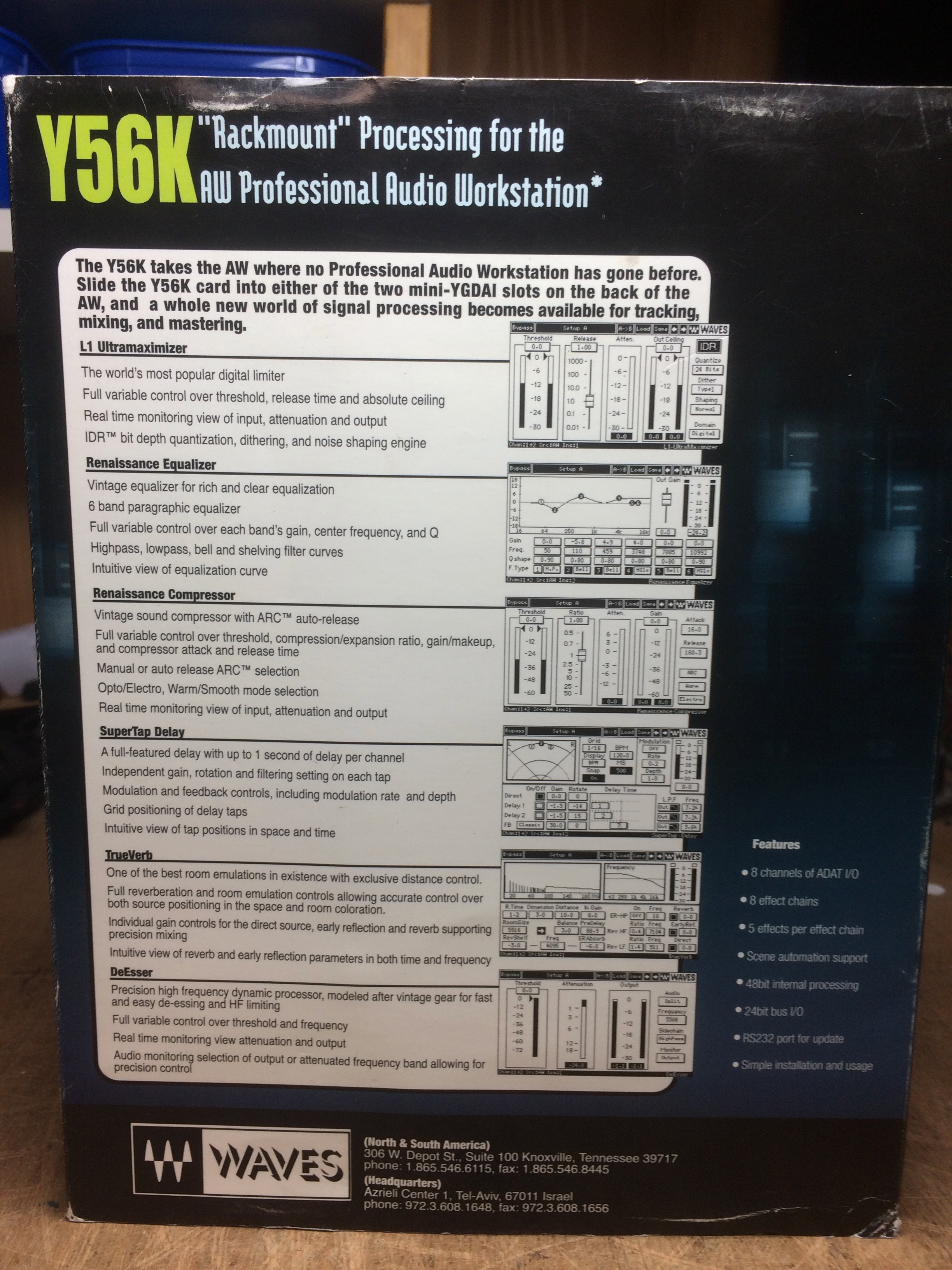Waves Y56K는 Yamaha AW 시리즈 워크스테이션(예: AW4416, AW2816 등)을 위한 DSP 이펙트 & ADAT I/O 확장 카드입니다. Waves 플러그인 시리즈의 대표적 프로세서(L1, Renaissance Comp/EQ, De-esser, Trueverb, Supertap 등)를 하드웨어 DSP로 구현하여, 최대 8채널 ADAT 광입출력과 함께 AW 시리즈에 고품질 이펙트 체인을 추가할 수 있습니다.