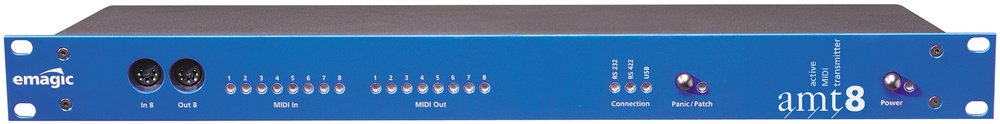 Emagic AMT8은 USB 프로토콜과 Mac 및 PC 직렬 포트 모두에서 작동하도록 설계된 Emagic의 새로운 MIDI 인터페이스 제품군 중 첫 번째 제품입니다. 특히, 최신 Mac G3 및 G4 소유자에게 유용하며 일부 PC에서도 USB를 사용할 수 있습니다. 이 제품은 Emagic의 새로운 Active MIDI Transmission 기술을 자랑합니다.