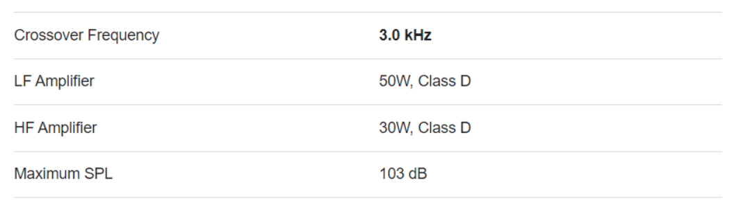 메인 스피커의 스펙 정보