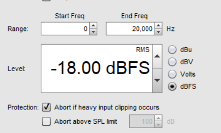 해당 MaxSPL 값을 알려주게 된다. 이 값을 자신의 스피커 시스템의 실제 스펙과 비교하여 맞는 값인지 체크해야 한다. 대부분 모니터 스피커와 같은 액티브 스피커의 경우는 스피커 제조사에서 MaxSPL 스펙을 공시했을 것이고, 만약 패시브 스피커라면 앰프와 매칭 된 스피커의 감도를 계산하여 앰프의 Peak Watt 에서의 스피커의 dBSPL 값을 구해야 한다.