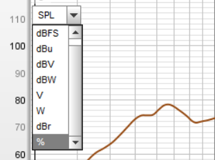 dBSPL 로 그래프를 나타내면 어느 주파수에 어느 정도의 왜곡이 있는지 들리는 것과 비슷하게 보여줍니다. 하지만, THD+N 은 스펙으로 표기 할때 보통 % 로 표기 하기 때문에, 좌상단의 세로축 표기를 % 로 바꾼 그래프도 보면 좋습니다.
